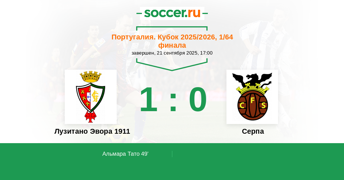 Лузитано Эвора 1911 - Серпа: обзор матча 21 сентября 2025