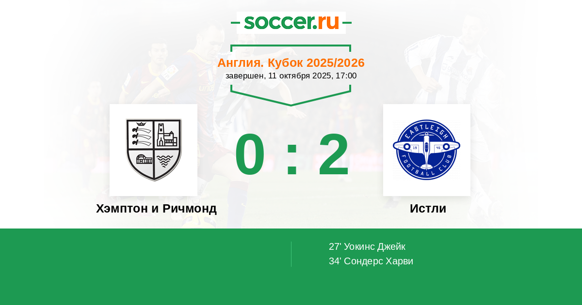 Хэмптон и Ричмонд - Истли: обзор матча 11 октября 2025
