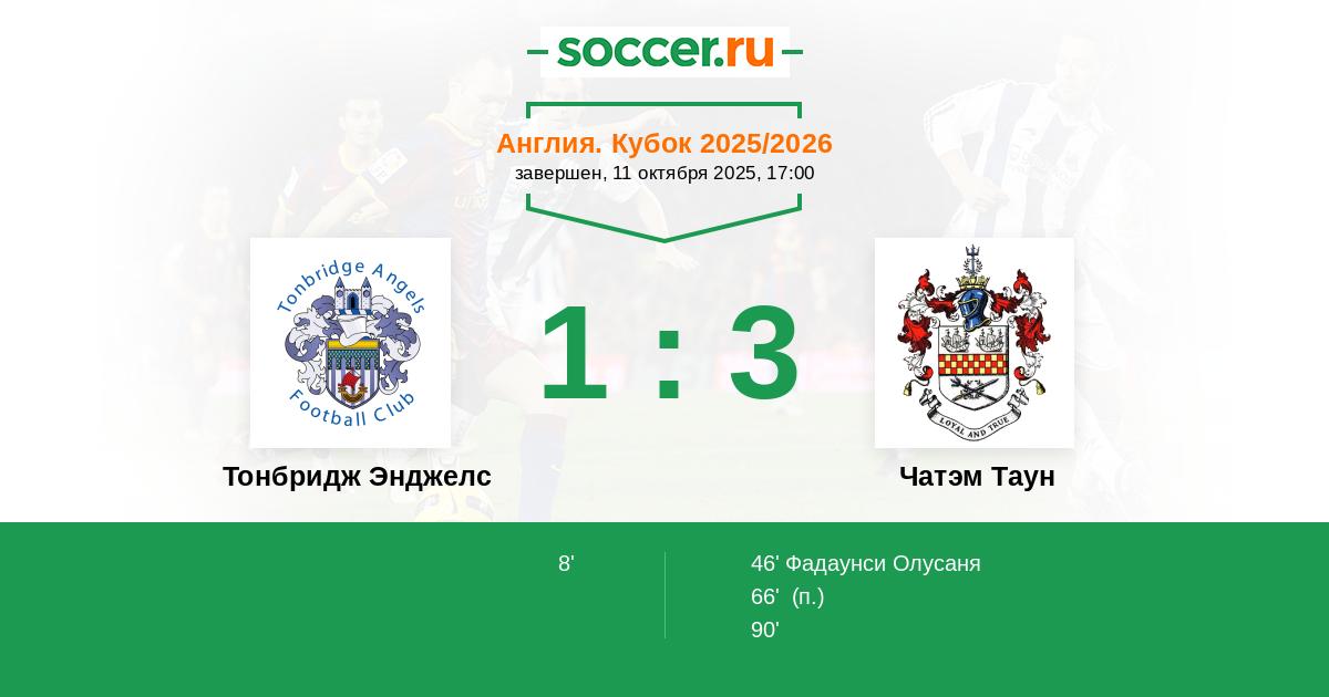 Тонбридж Энджелс - Чатэм Таун: обзор матча 11 октября 2025