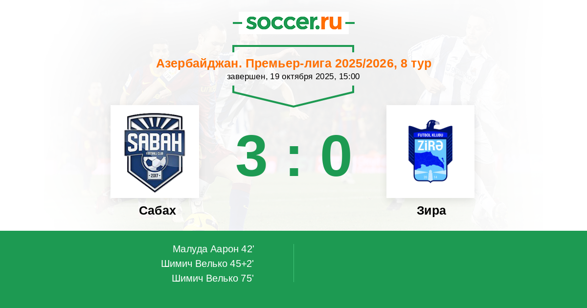 Сабах - Зира: обзор матча 19 октября 2025