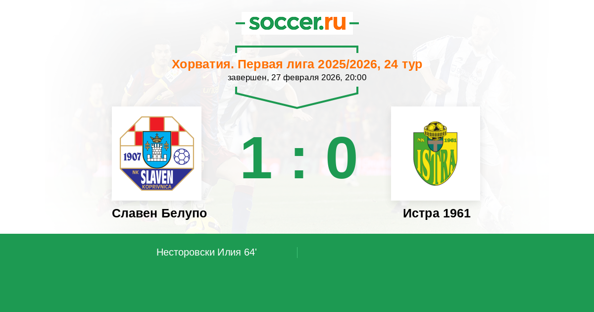 Славен Белупо - Истра 1961: обзор матча 27 февраля 2026