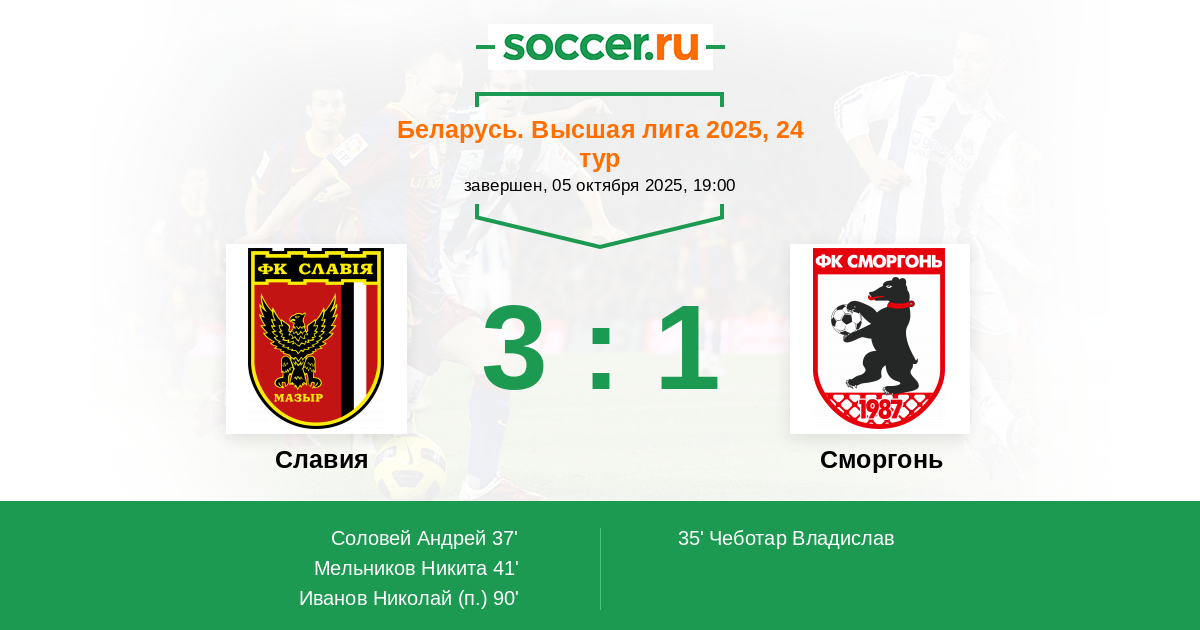 Славия - Сморгонь: обзор матча 5 октября 2025
