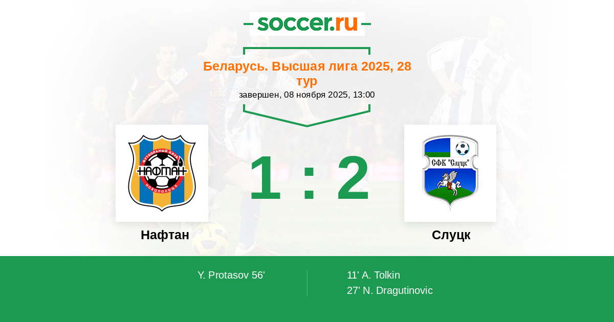 Нафтан - Слуцк: обзор матча 8 ноября 2025