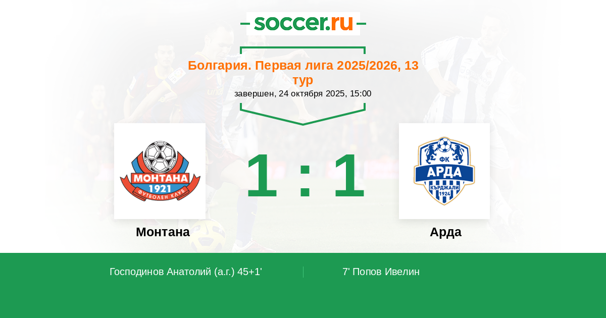 Монтана - Арда: обзор матча 24 октября 2025