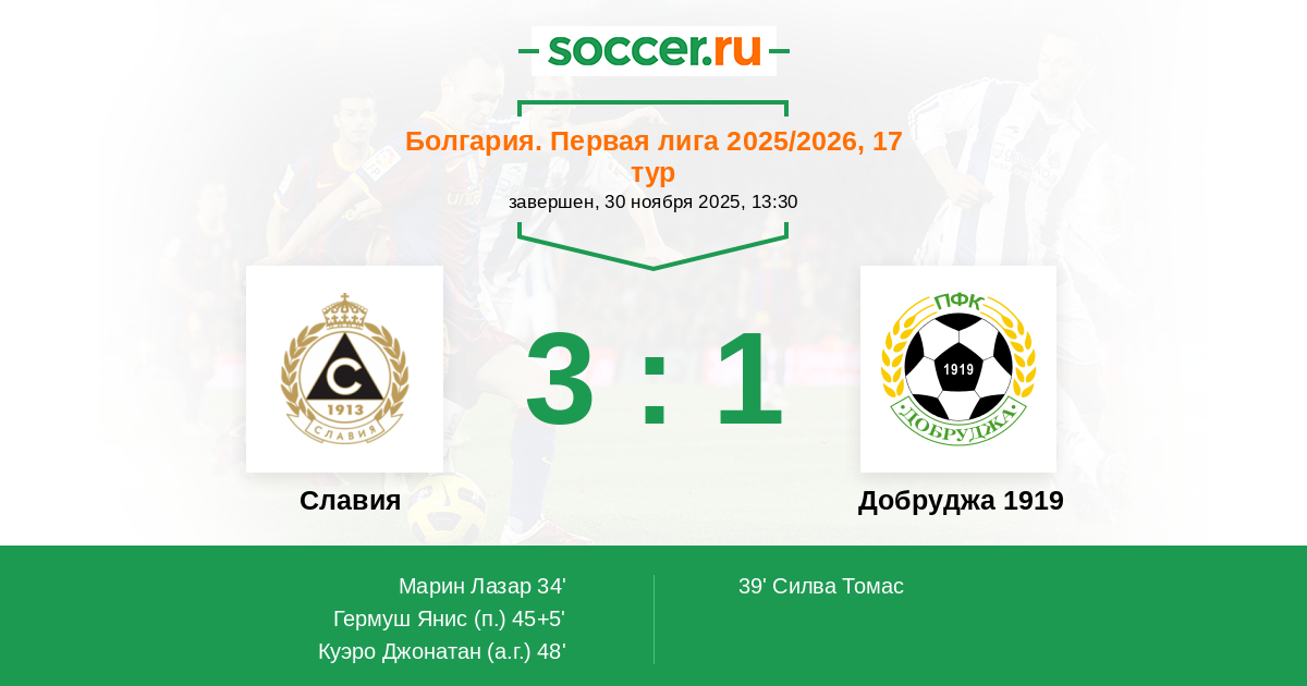 Славия - Добруджа 1919: обзор матча 30 ноября 2025