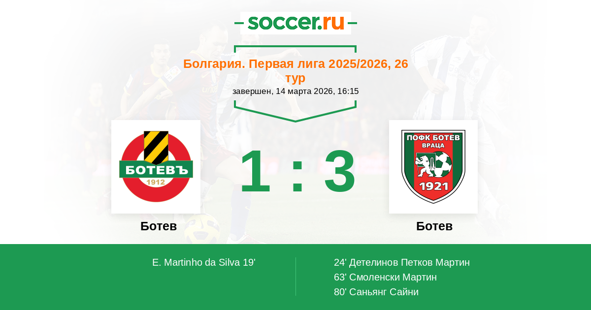 Ботев Пл - Ботев Вр: обзор матча 14 марта 2026