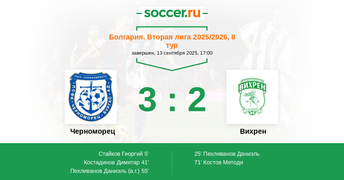 Черноморец - Вихрен: обзор матча 13 сентября 2025