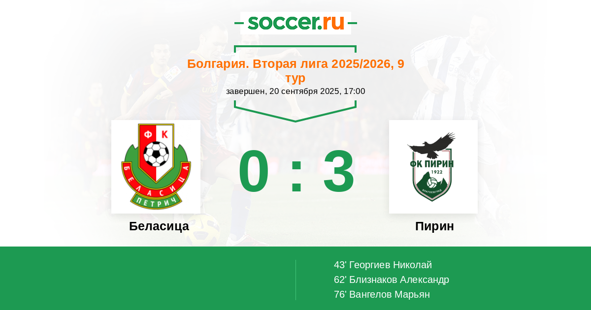 Беласица - Пирин: обзор матча 20 сентября 2025