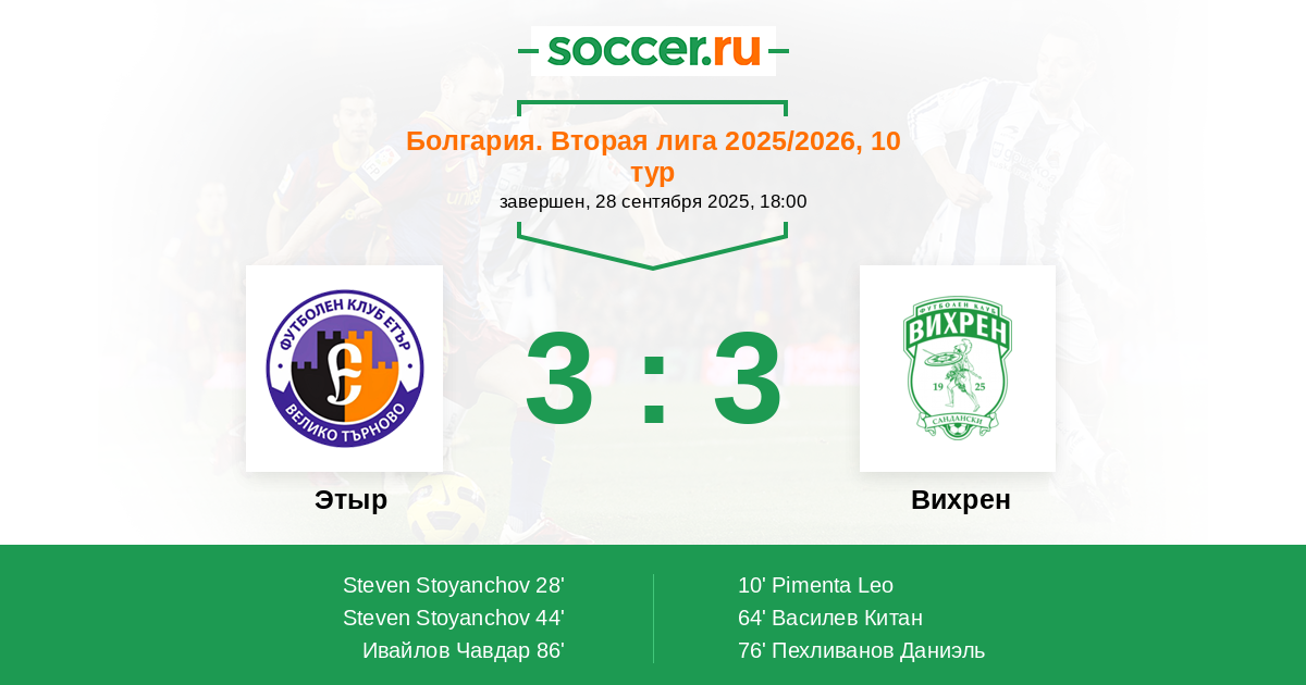 Этыр - Вихрен: обзор матча 28 сентября 2025