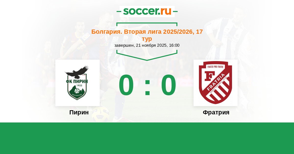 Пирин - Фратрия: обзор матча 21 ноября 2025