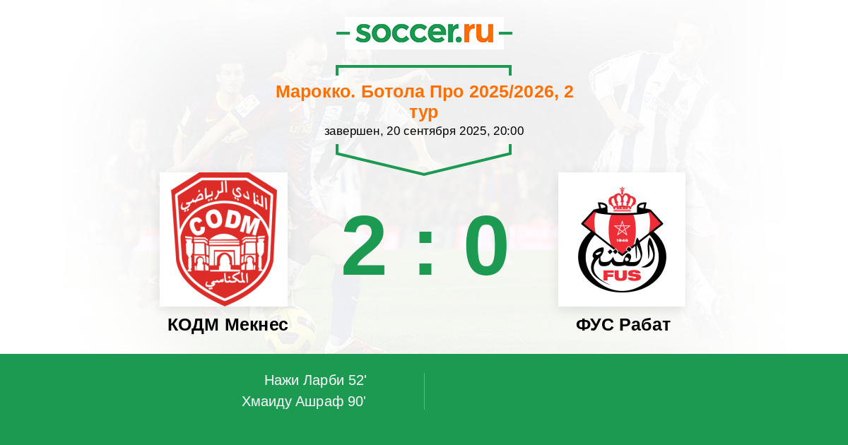 КОДМ Мекнес - ФУС Рабат: обзор матча 20 сентября 2025