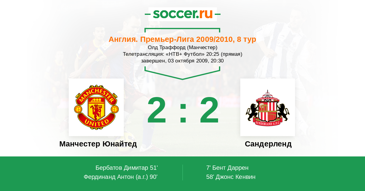 Манчестер Юнайтед - Сандерленд: обзор матча 3 октября 2009