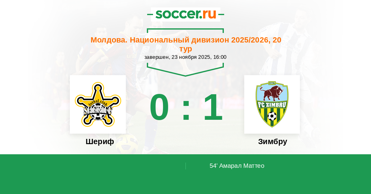 Шериф - Зимбру: обзор матча 23 ноября 2025