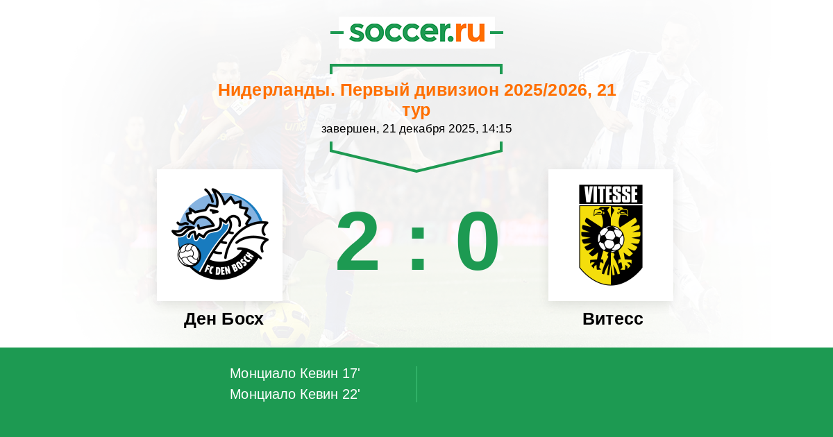 Ден Босх - Витесс: обзор матча 21 декабря 2025