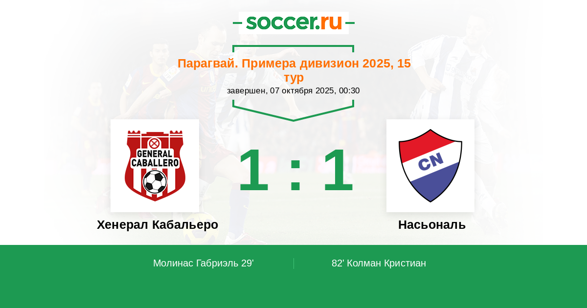 Хенерал Кабальеро - Насьональ: обзор матча 7 октября 2025