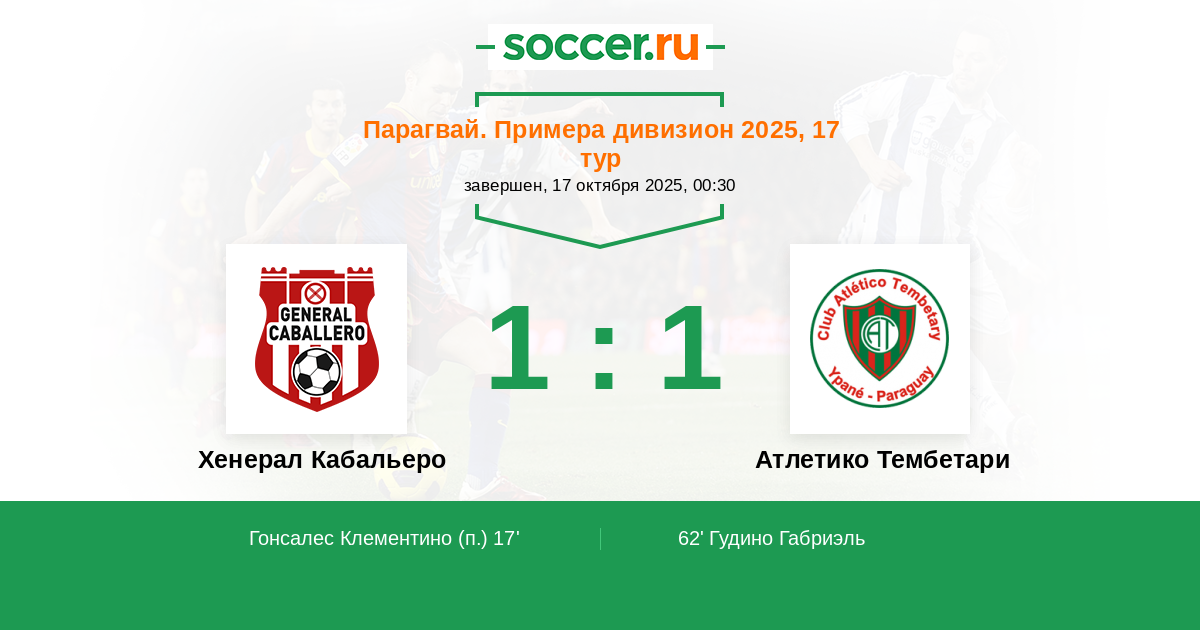 Хенерал Кабальеро - Атлетико Тембетари: обзор матча 17 октября 2025