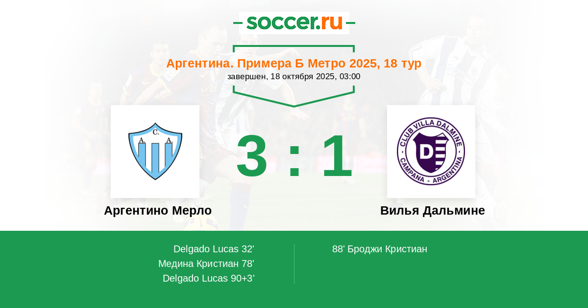 Аргентино Мерло - Вилья Дальмине: обзор матча 18 октября 2025