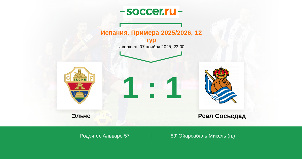 Эльче - Реал Сосьедад: обзор матча 7 ноября 2025