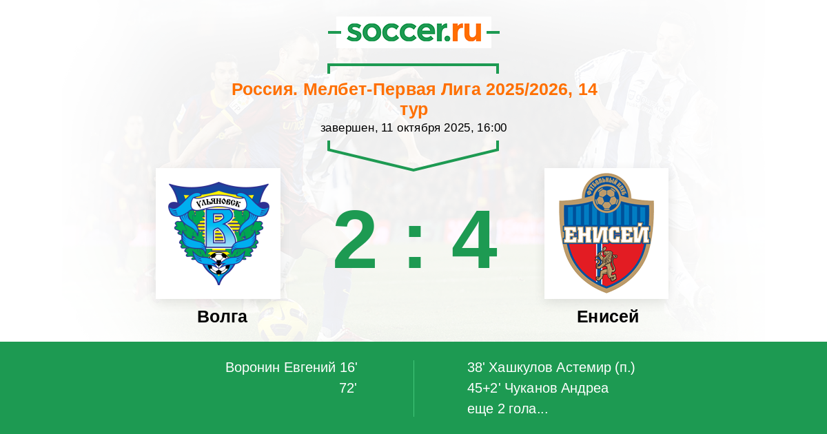 Волга - Енисей: обзор матча 11 октября 2025