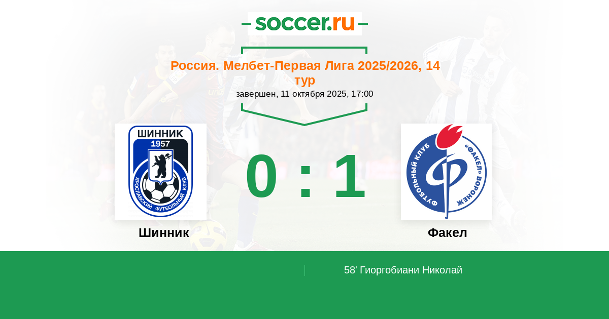 Шинник - Факел: обзор матча 11 октября 2025