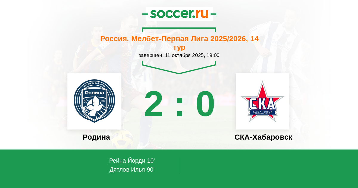 Родина - СКА-Хабаровск: обзор матча 11 октября 2025