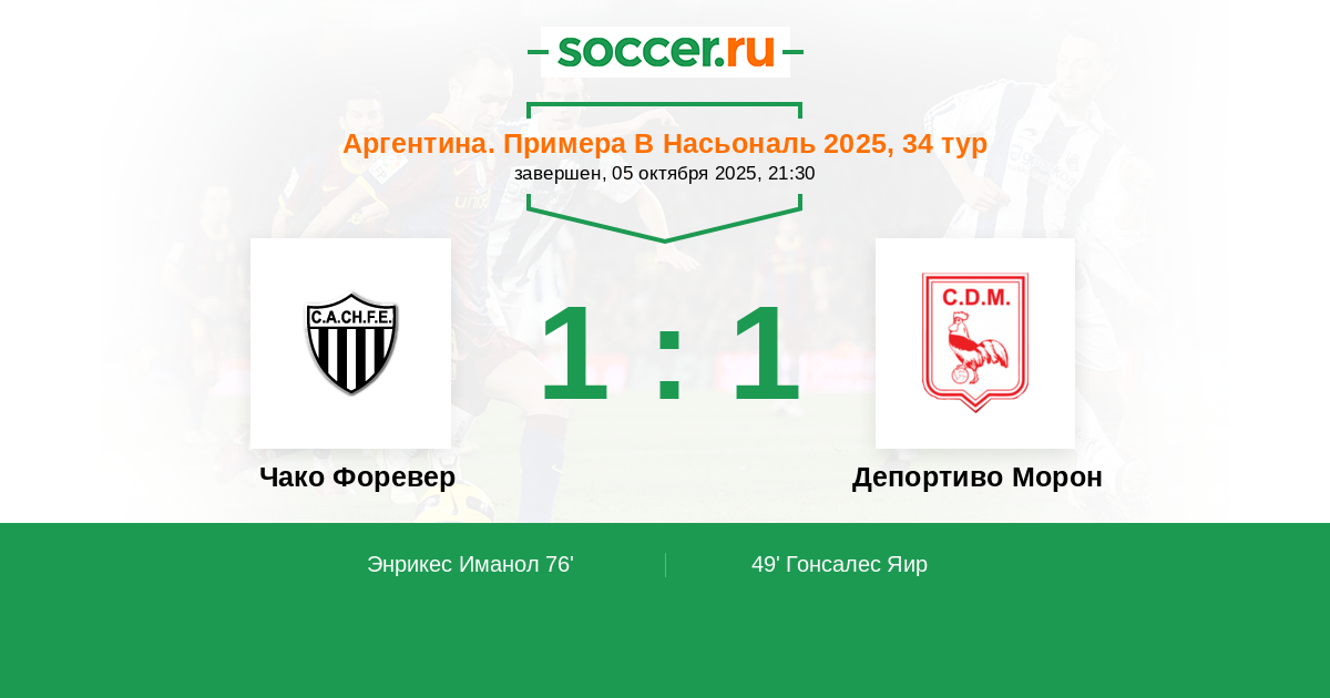 Чако Форевер - Депортиво Морон: обзор матча 5 октября 2025