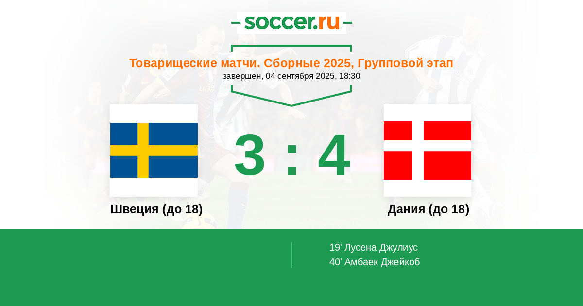 Швеция (до 18) - Дания (до 18): обзор матча 4 сентября 2025