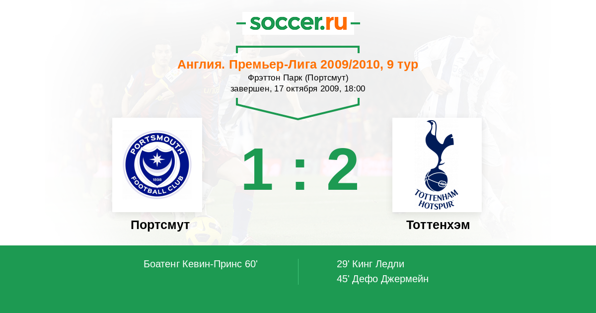Портсмут - Тоттенхэм: обзор матча 17 октября 2009
