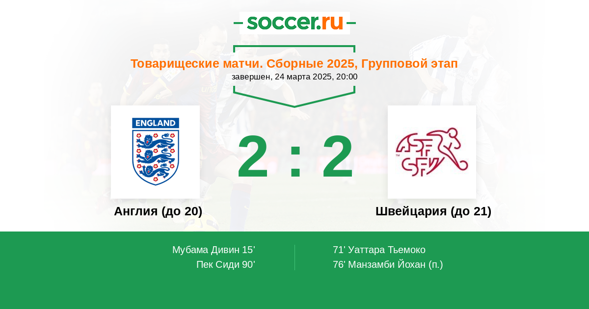 Англия (до 20) - Швейцария (до 21): обзор матча 24 марта 2025