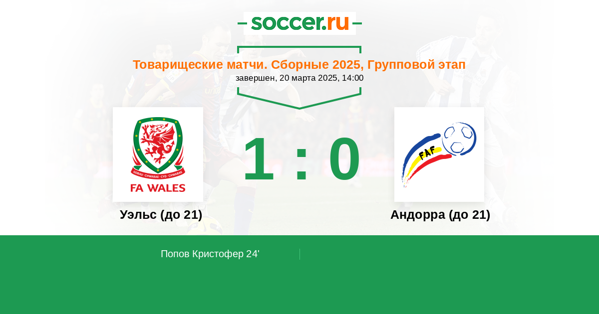 Уэльс (до 21) - Андорра (до 21): обзор матча 20 марта 2025