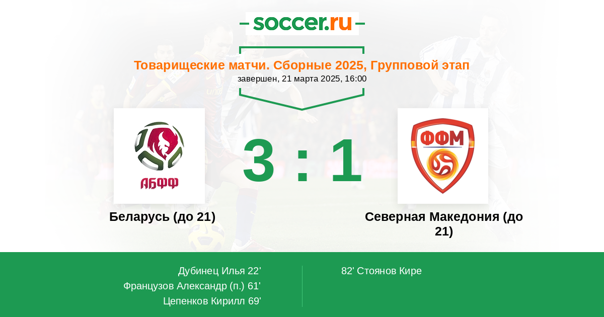 Беларусь (до 21) - Северная Македония (до 21): обзор матча 21 марта 2025