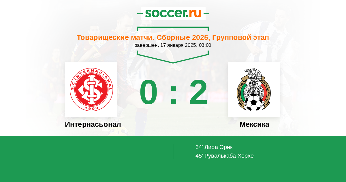 Интернасьонал - Мексика: обзор матча 17 января 2025