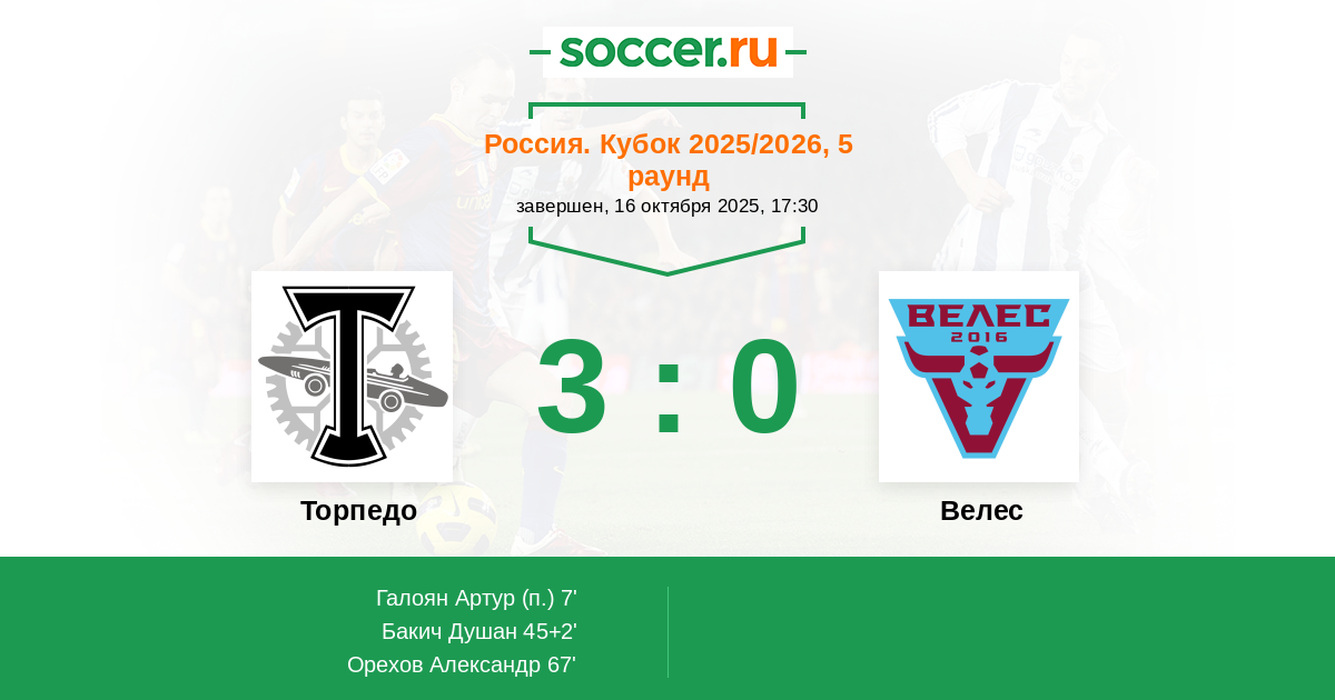 Торпедо - Велес: обзор матча 16 октября 2025
