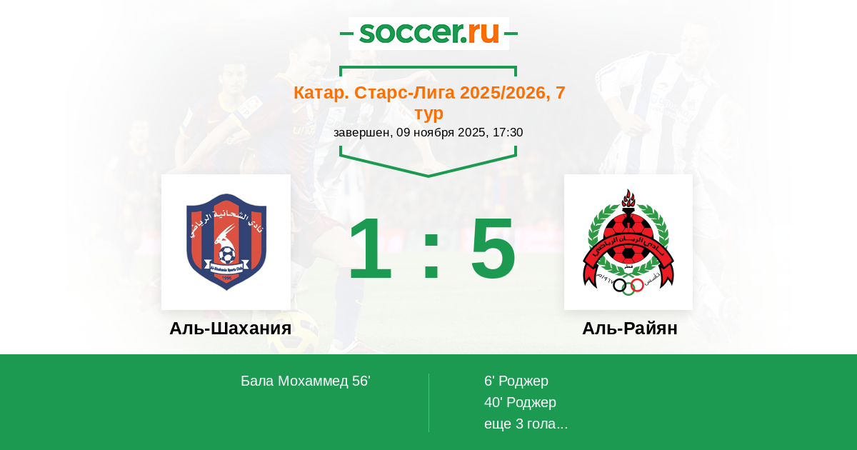 Аль-Шахания - Аль-Райян: обзор матча 9 ноября 2025