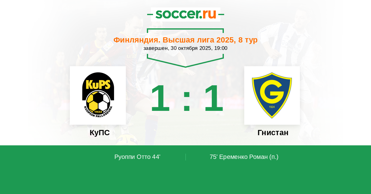 КуПС - Гнистан: обзор матча 30 октября 2025