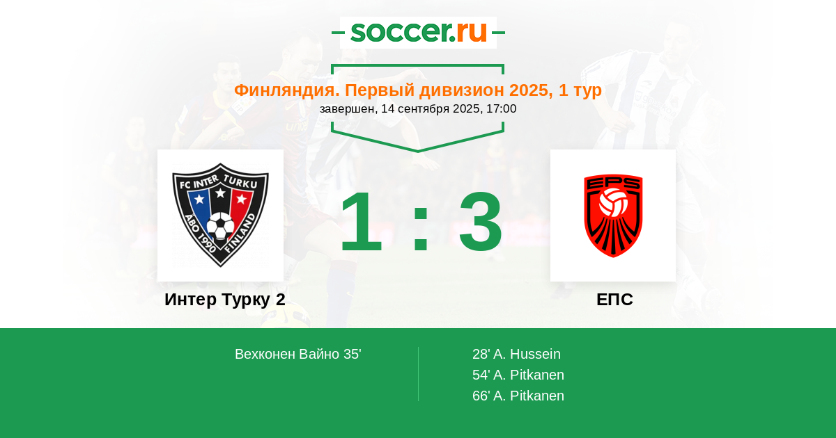 Интер Турку 2 - ЕПС: обзор матча 14 сентября 2025