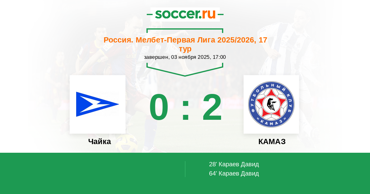 Чайка - КАМАЗ: обзор матча 3 ноября 2025
