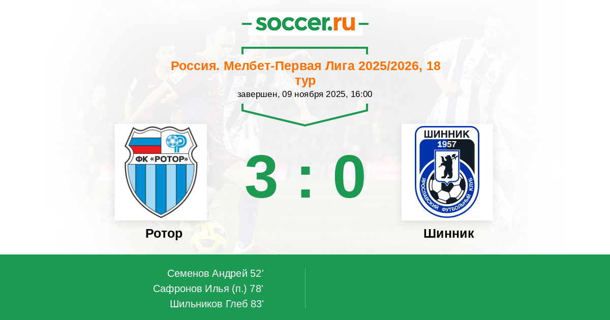 Ротор - Шинник: обзор матча 9 ноября 2025