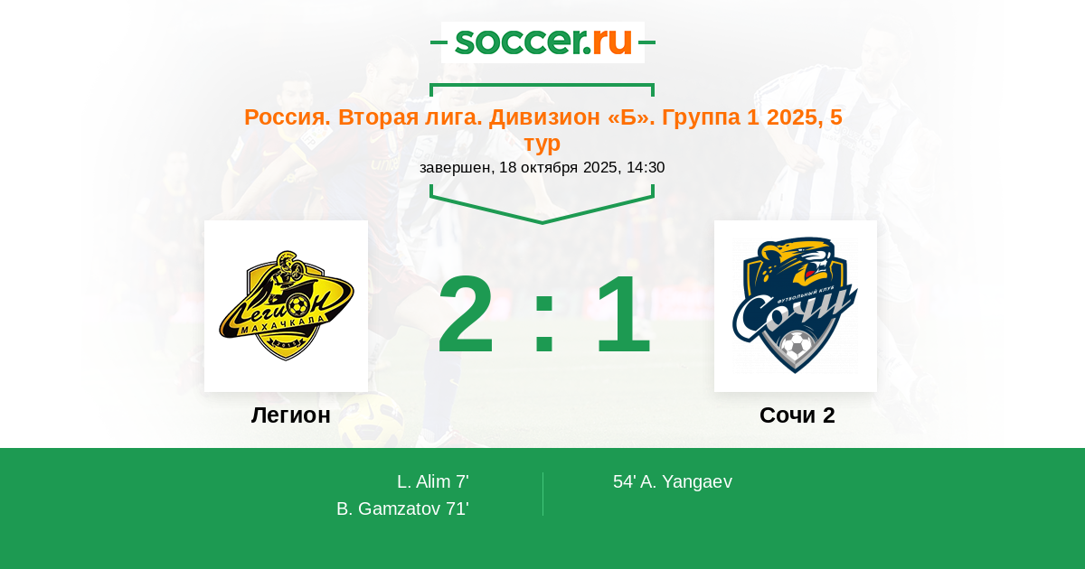 Легион - Сочи 2: обзор матча 18 октября 2025