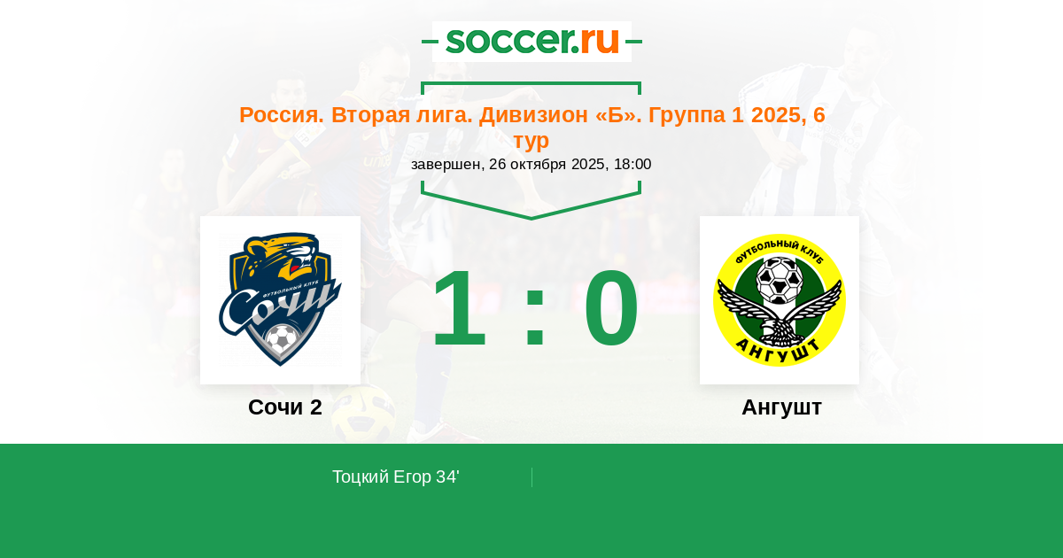Сочи 2 - Ангушт: обзор матча 26 октября 2025