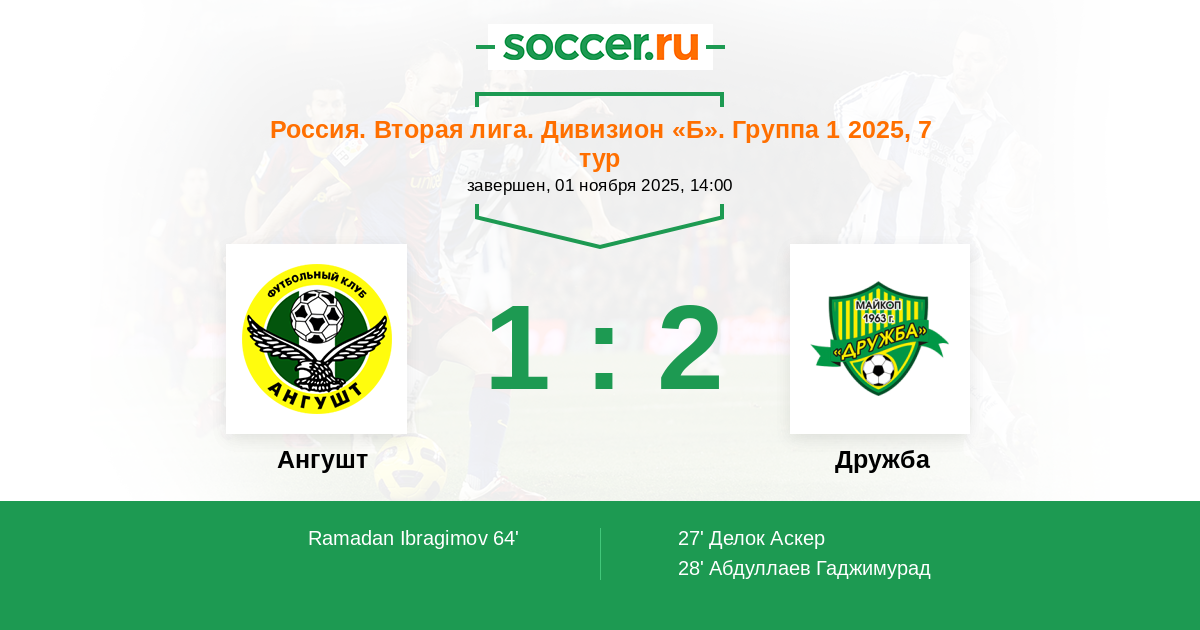 Ангушт - Дружба: обзор матча 1 ноября 2025
