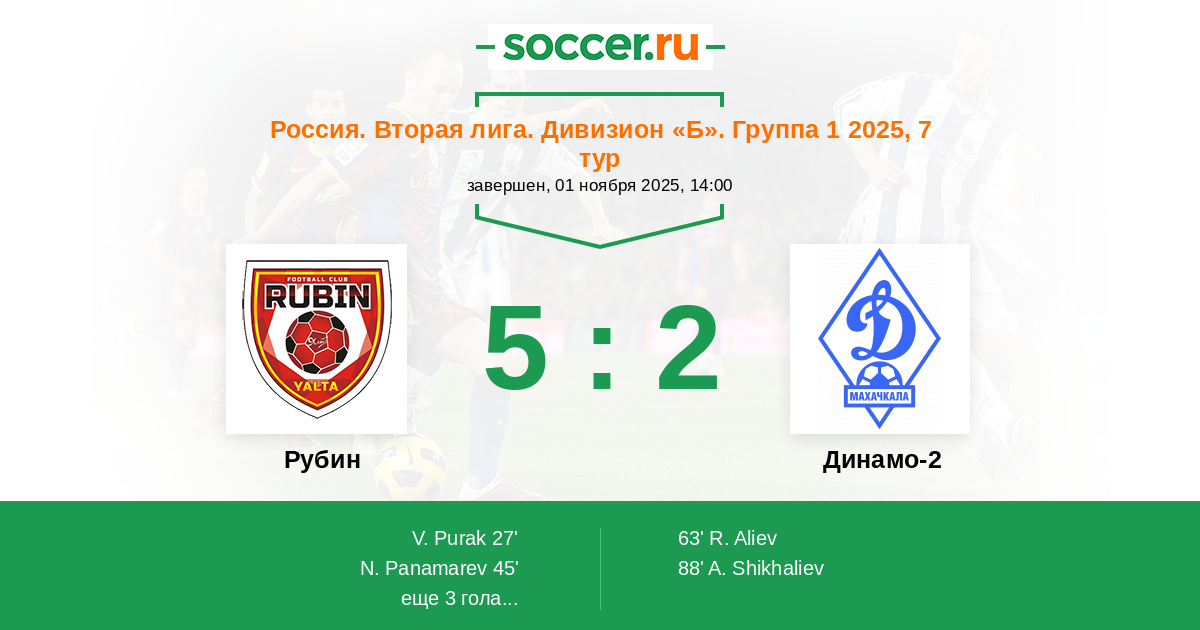 Рубин - Динамо-2: обзор матча 1 ноября 2025