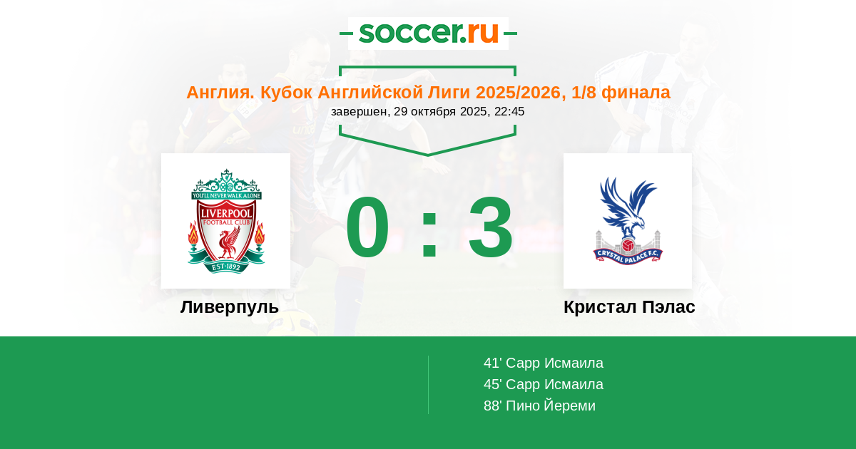 Ливерпуль - Кристал Пэлас: обзор матча 29 октября 2025