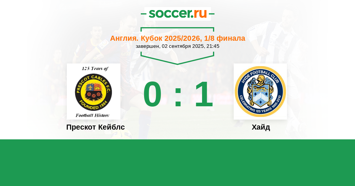 Прескот Кейблс - Хайд: обзор матча 2 сентября 2025