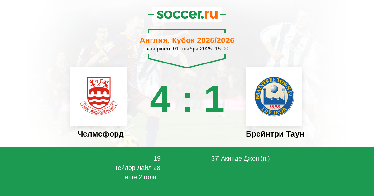 Челмсфорд - Брейнтри Таун: обзор матча 1 ноября 2025