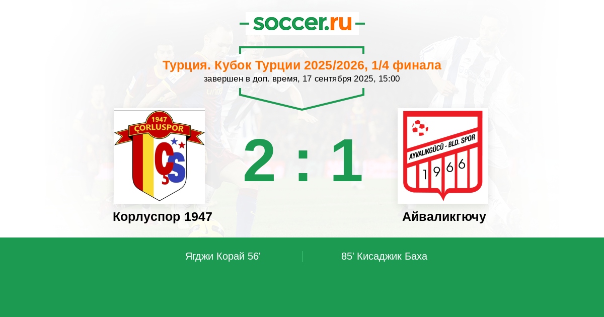 Корлуспор 1947 - Айваликгючу: обзор матча 17 сентября 2025