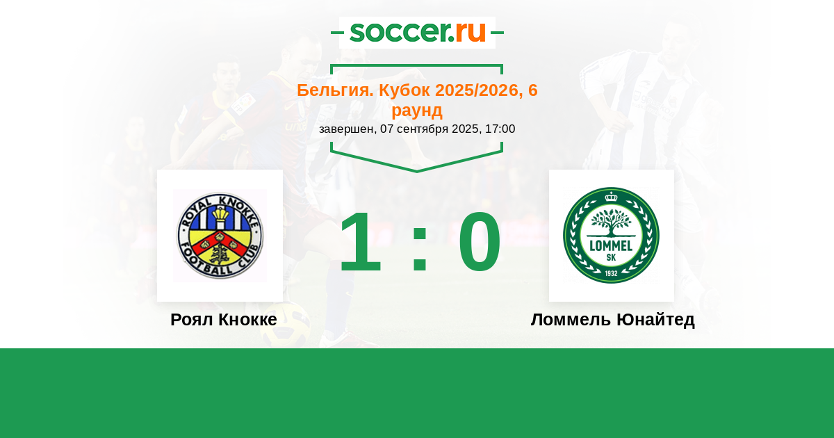 Роял Кнокке - Ломмель Юнайтед: обзор матча 7 сентября 2025