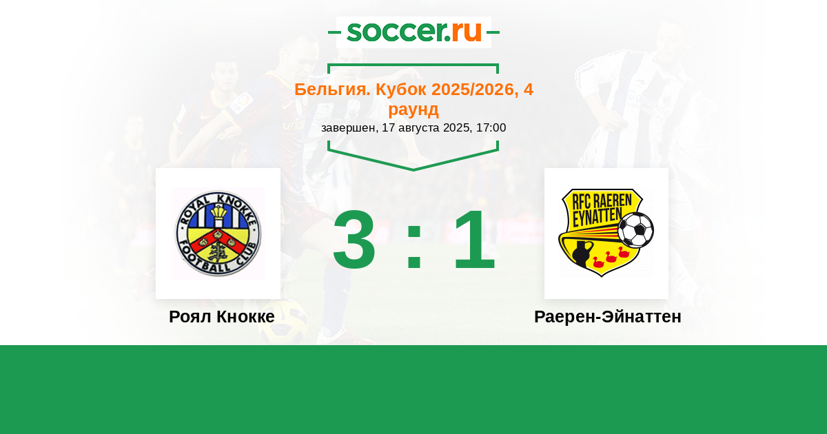 Роял Кнокке - Раерен-Эйнаттен: обзор матча 17 августа 2025