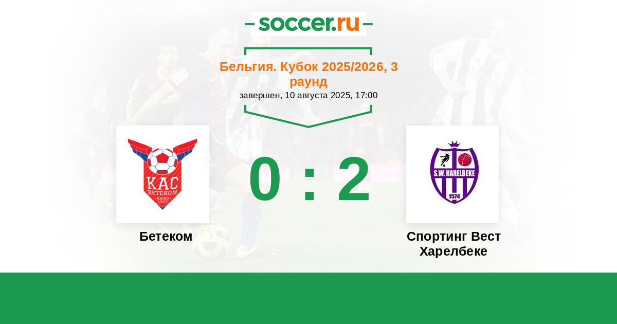 Бетеком - Спортинг Вест Харелбеке: обзор матча 10 августа 2025