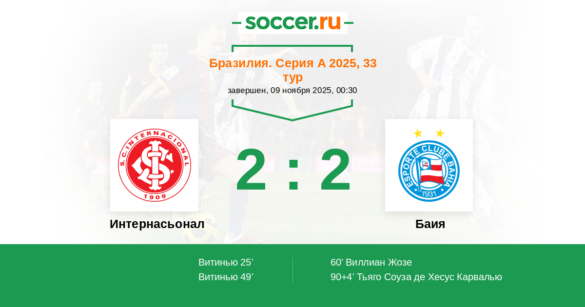 Интернасьонал - Баия: обзор матча 9 ноября 2025